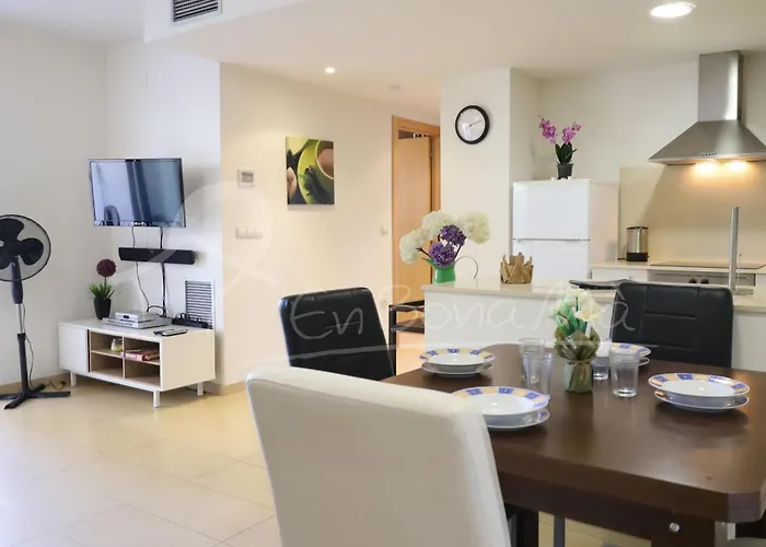 Une cuisine complète dans cette propriété Apartamento Moderno De 2 Dormitorios Con Jardin Privado A 100M De La Playa - Es-366-7 est équipée d'un four et d'un lave-vaisselle pour les besoins des hôtes. L'arrêt de bus les Querabs 1 est à une distance de 10 minutes de marche. L'appartement inclut une terrasse.